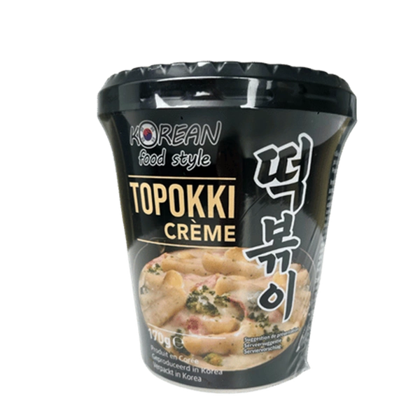 Topokki Creme to łagodna, kremowa wersja klasycznych koreańskich klusek ryżowych tteokbokki, które od lat są jednym z najpopularniejszych dań ulicznych w Korei. Ta wersja została stworzona z myślą o osobach, które chcą poznać smak kuchni koreańskiej bez dominującej ostrości charakterystycznej dla tradycyjnego sosu gochujang.